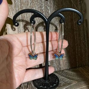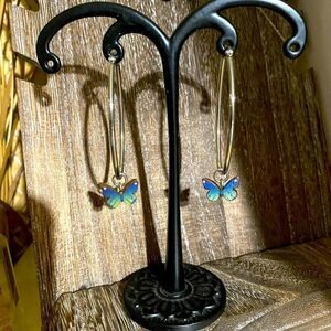 Stainless Steel Wooden Butterfly Hoop Earrings