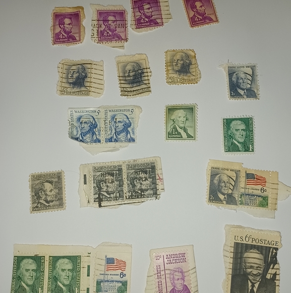 Inherited my grandfather's stamp collection there are a variety of Abraham Lincoln, George Washington, Dwight D Eisenhower, Andrew Jackson & more.