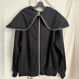 This hoodie from Stampd features the brand name embroidered in white on the left chest. The front has a two-way zipper and drawstrings at hood. The back features another two-way zipper that runs from the top end of the hood all the way to the hem of the jacket. This means you can style the back open, or the hoodie open.