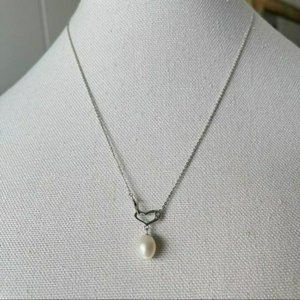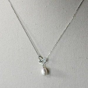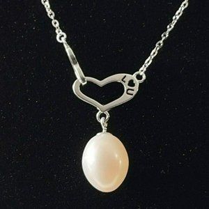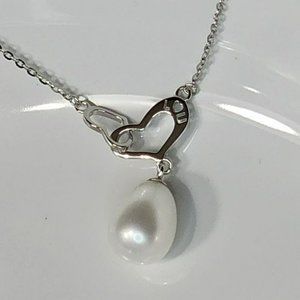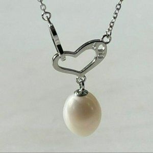 Stamped I LOVE U 925 Sterling Silver Cultured Drop Freshwater Pearl Pendant Heart Necklace 18in