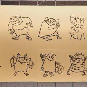 Booglie Eyes is a used 8 piece set of wood block rubber stamps.