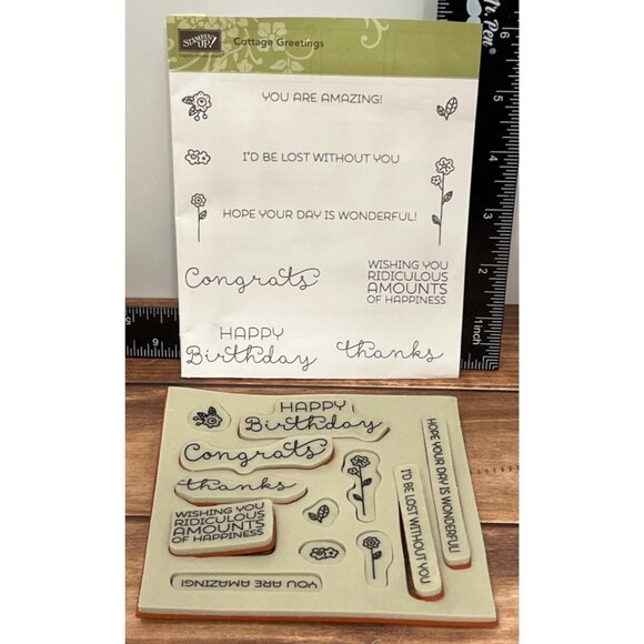 The Cottage Greetings stamp set by Stampin' Up! offers versatile designs for crafting projects. Ideal for card making, it features sentiments that suit various occasions. High-quality RUBBER ensures crisp impressions.