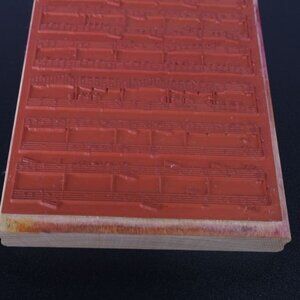 Pre-owned with stamp staining. In good stamping condition. The wood has ink stains.