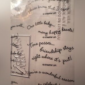 Stampin' Up! Four Retired Rubber Stamp Set All New. Includes floral and script designs. Perfect for crafting and scrapbooking.