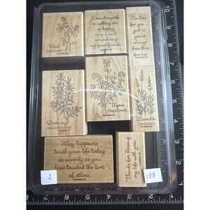 Stampin Up! Herb Expressions Wood-Mounted Rubber Stamp Set of 8 Rosemary Thyme