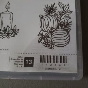 I am selling a preowned Stampin' Up photopolymer stamp set with 13 pieces.