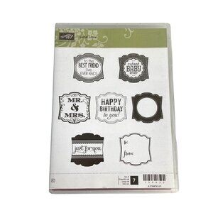Stampin' Up! Label Love, Set of 7 Rubber Stamps, Gift Tags Wedding Birthday Baby