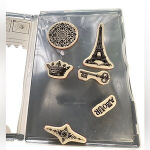Stampin’ Up! Rubber Stamps Artistic Etchings Paris Travel Collage. For use with Acrylic Block. Gently used.