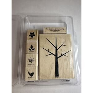 Stampin Up Season of Friendship Wood Stamp Set of 6 Tree, Leaf, Bird, Flower, Snowflake, The season of friendship lasts forever