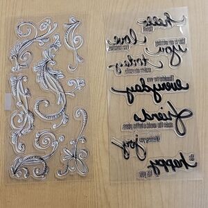 A variety of stamps for the scrapbooking or craft enthusiasts. There are some blank blocks and also lots of stamps.