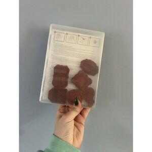The Stampin Up Tagtastic Rubber Hostess Stamp Set includes a set of unmounted rubber stamps featuring images related to special occasions such as birthdays, thanks, and congratulations. Made in the United States by the brand Stampin' Up!, these stamps are perfect for crafting and stamping projects that require unique and heartfelt designs. The set includes various border stamps for adding decorative touches to cards, scrapbook pages, and other paper crafts. Ideal for stamping enthusiasts looking to add special touches to their projects.