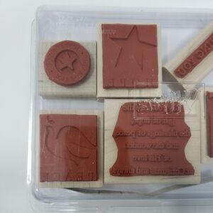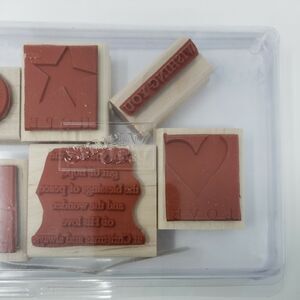 The stamps are made of high-quality rubber and are in great condition. They have been gently used and have plenty of life left. The stamps are easy to use and produce beautiful, clear images. Don't miss out on the opportunity to add these lovely stamps to your collection! See all photos.