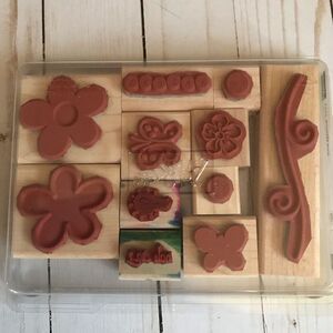 Stampin up! Miscellaneous wood mounted rubber stamps set of 10 floral butterfly