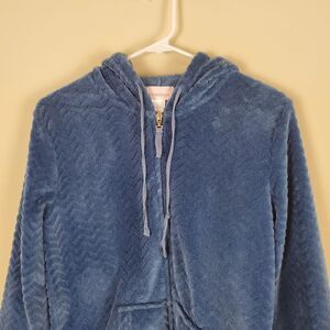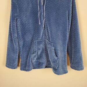 Stan Herman Blue Chevron Soft Plush Zip Up Hooded Jacket Size medium