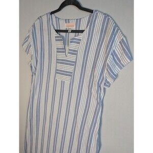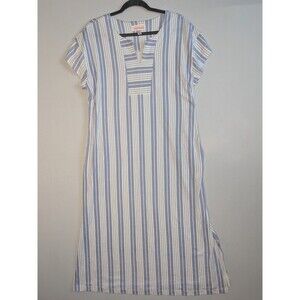 Stan Herman Hamptons Petite 100% Cotton V-Neck Caftan Medium White Blue Stripes