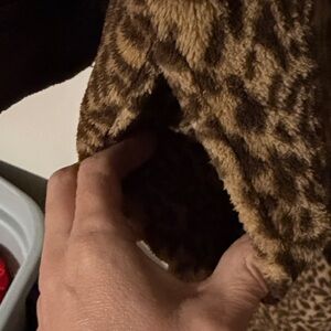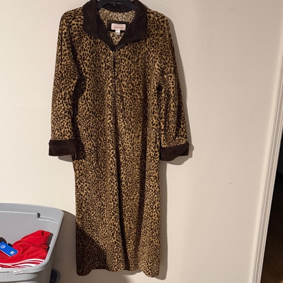 Elegant Stan Herman robe with a chic leopard print. Features a comfortable design. Full zip with pockets and super soft!