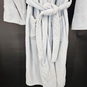 Stan Herman Robe Womens L/XL Light Blue Plush Fleece Belted Shawl Collar Pockets