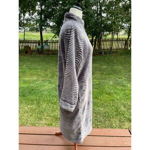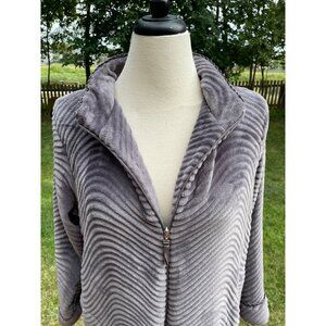 Stan Herman Womens PL Gray Ribbed Fleece Zip-Up Lounger Polyester Long Soft Warm