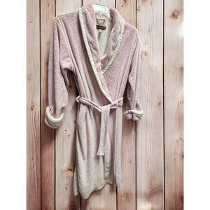 Stan Herman Womens Plush Fleece Bathrobe Light Pink Waffle Knit Cuffs