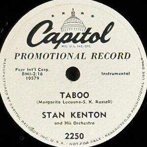 Stan Kenton Taboo / Lonesome Train Capitol Promotional 2250 Shellac 78 RPM