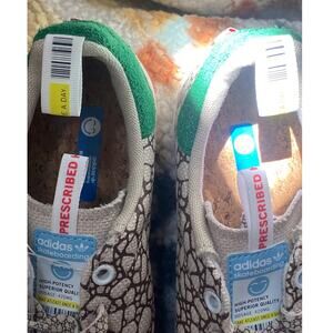 West Coast boutique BAIT and adidas Skateboarding release a trailblazing rendition of the Stan Smith Vulc.Named “420” in honor of the upcoming day of marijuana appreciation, the sneaker features an upper of natural hemp that has been heat-pressed to create a stoned pattern, while the heel utilizes a hairy chunky suede in Stan Smith green and embossed with a white Trefoil design. Meanwhile, the tongue label and heel pull tab emulate medicinal labeling with a bar code and instructions on dosage. Finishing touches include a cork footbed, chosen for its “natural” provenance, and a stash pocket on the inside of the tongue to store illicit items.