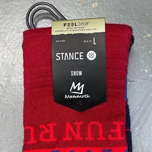 Selling a Brand New with Tags pair of Stance Performance Infiknit Feel 360 Mammoth Mountain Snow Sport Socks in Red with Navy Blue.
