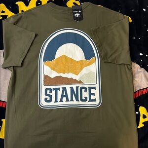 This Stance tee in a refreshing green shade is a versatile addition to any wardrobe. Its short sleeves and classic crew neck design offer a timeless look, while the subtle branding on the front adds a touch of sophistication. Perfect for everyday wear, this shirt combines comfort with understated style.