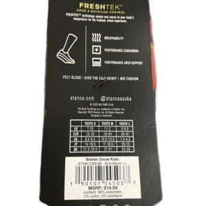 Stance performance Bomin Snow Kids socks (Large,Black) OTC large, new