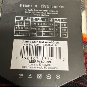 Stance performance Unisex Jimmy Chin Mid Wool Crew Red Medium socks NWT