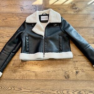 Stand Studio Cropped Black Lorelle Faux Shearling & Leather Jacket/ SMALL/*MINT