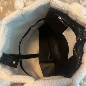 Stylish black and cream tote bag perfect for any occasion. Features a sleek design with a soft, contrasting trim. Ideal for everyday use.