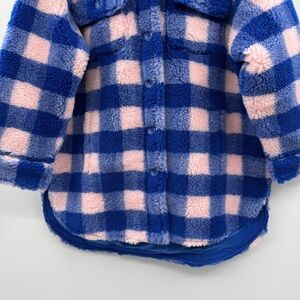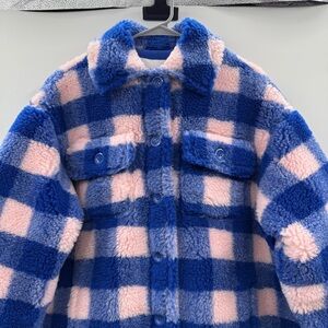 Stand Studio Sabi Oversized Blue & Pink Plaid Fuzzy Shacket Jacket Sz 32