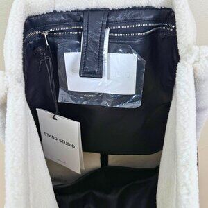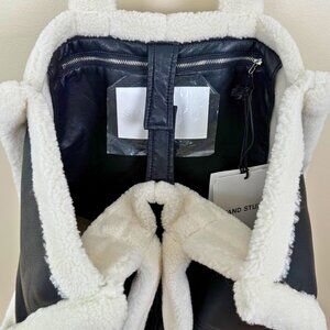 Stand Studio Vegan Leather & Sherpa Tote - Black & White - NWT