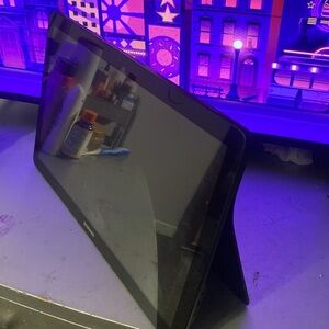Hey how are you doing this is a standing computer not really sure what’s the name but the brand is Samsung it does work and it does not have any cracks on the display or back