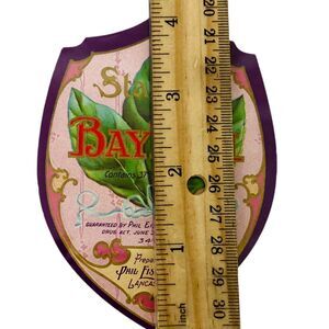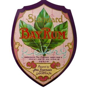* Vintage Standard Bay Rum label 1906 Phil Eisemann, Lancaster, PA Embossed Advertising.