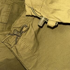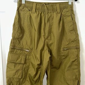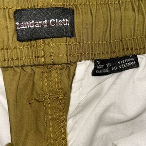 Standard Cloth Men’s Green Cargo lightweight Pants.Drawstring elastic closure.Approx measurement 28”Stretched 29”,Rise 10.5”,Inseam 30”,Length 40”.NWOT