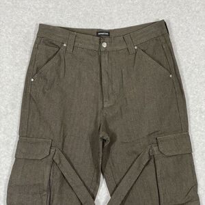 Standard Cloth Pants Men Small Cargo Utility Straps Herringbone Brown 90s Grunge