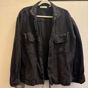 Men’s Standard Cloth waffle knit shacket with button front. Size medium. Blue/black/gray color, almost like a navy periwinkle? Really pretty soft neutral color. Cozy