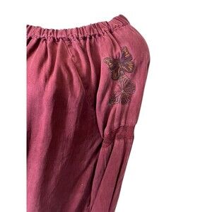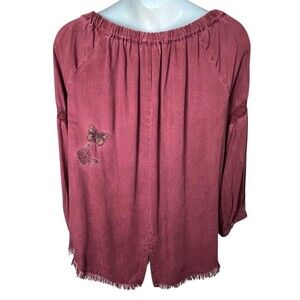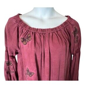 Standard Grace Butterfly Embroidered Boho Top Size XL Poet Sleeves Frayed Hem