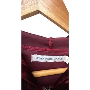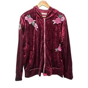 Standard Grace Crushed Velvet Hoodie XL Burgundy Floral Embroidered Zip Jacket