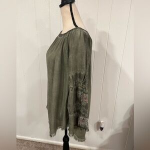 Standard Grace Olive green long sleeve blouse with back buttons size M