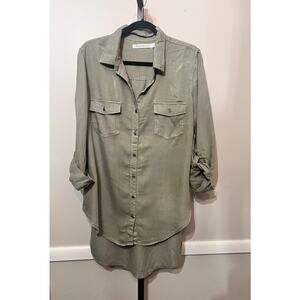 Standard Grace Rolled Sleeve Hi-Low Button-Up Shirt Olive Women's Size Large NWT