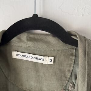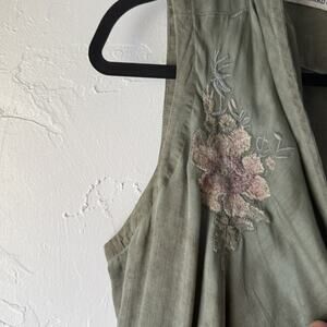 Standard Grace Vest Womens Medium Green Sleeveless Waterfall Drape Floral Embroidered