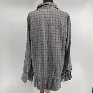 Standard Grace star print button down shirt starry ruffle detail astrology sz lg