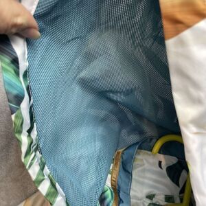 Great preowned condition with some very faint discolorations which are pictured. I couldn't find any tags, but this feels like repellent fabric.
