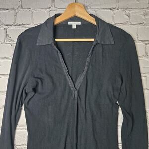 Standard James Perse Black V-Neck Collared Black Long Sleeve Top 100% Cotton 2