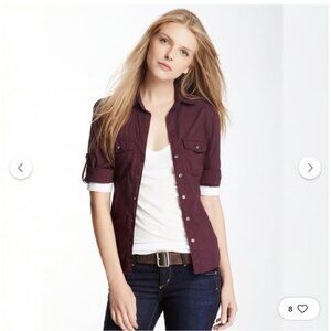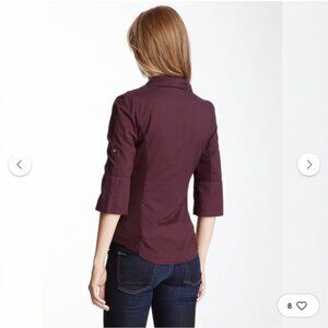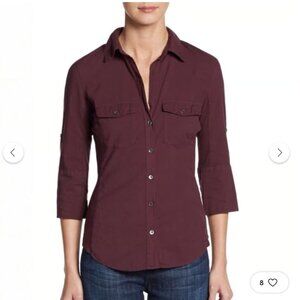 Standard James Perse Contrast Panel Cotton Shirt Button Up 3/4 Roll Tab Sleeve 3