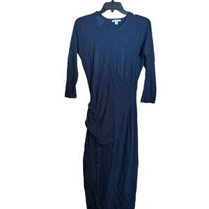 Standard James Perse Dress Womens Small Black Ruched Midi Cotton Blend Stretch