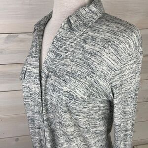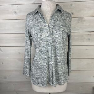 Standard James Perse Gray and white heathered Long Sleevecollared button front soft jersey blouse