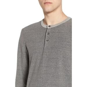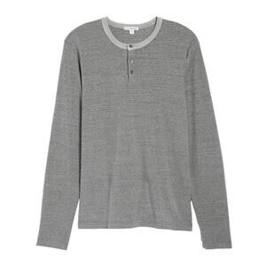Standard James Perse Men's Henley Long Sleeve Shirt Pollock Pigment Micro Stripe